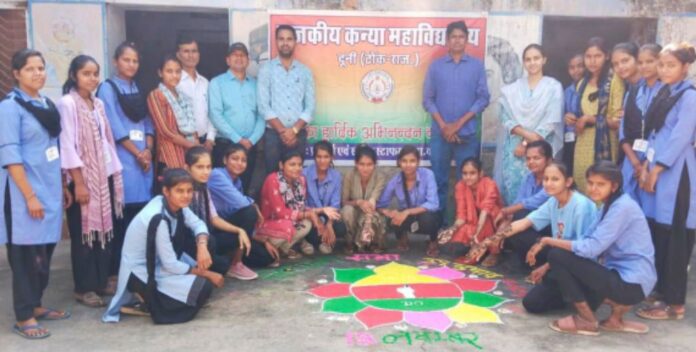 राजकीय कन्या महाविद्यालय दूनी मतदाता जागरूकता अभियान के तहत स्वीप गतिविधियों के अंतर्गत छात्राओं द्वारा रंगोली तथा मेंहदी बनाकर मतदान में भागीदारी देने तथा लोगों को मतदान के प्रति जागरूक होने का आह्वान किया।