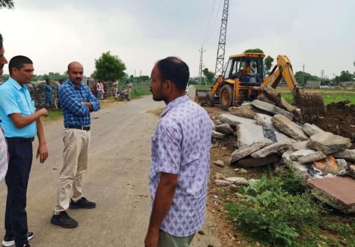 अधिशासी अधिकारी पवन कुमार शर्मा ने बताया कि बिना भू उपयोग परिवर्तन व आवासीय योजना का मानचित्र अनुमोदन कराए बगैर अरूपान्तरित भूखण्डों के बेचने के लिए खातेदारों द्वारा सडके निर्माण करवाई जा रही थी। सूचना पर नगर पालिका द्वारा उक्त खातेदारों द्वारा बनाई जा रही सडकों के आगे मशीन से ट्रेंच खोदकर मार्ग अवरूद्ध किया गया। यह हिस्सा देवपुरा रोड शमशान के पास है। कार्रवाई के दौरान तहसीलदार वीरेन्द्र सिंह शक्तावत, अधिशासी अधिकारी पवन कुमार शर्मा, कनिष्ठ अभियंता प्रियांश विजय, पुलिस जाप्ता सहित कुलदीप सिंह शक्तावत कार्यवाहक सफाई निरीक्षक व सफाई कर्मचारी थे।