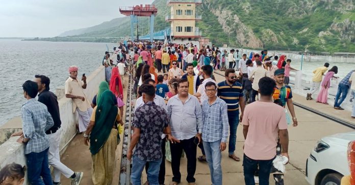 Deoli News 28 जुलाई (दैनिक ब्यूरो नेटवर्क) बीसलपुर बांध के पूर्ण जल भराव के बाद रेडियल गेट के माध्यम से अतिरिक्त पानी की निकासी का मनमोहक नजारा देखने के लिए सोमवार को लोगों की भीड़ उमड़ पड़ी।