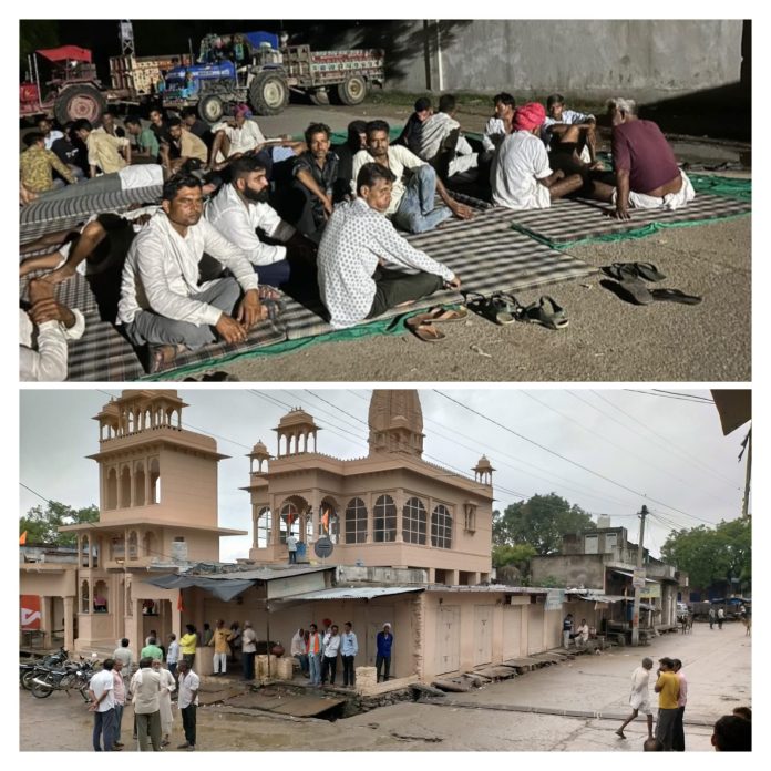 बजरी के ट्रैक्टर से कुचलकर युवक की हत्या, सैकड़ो लोग बैठे धरने पर