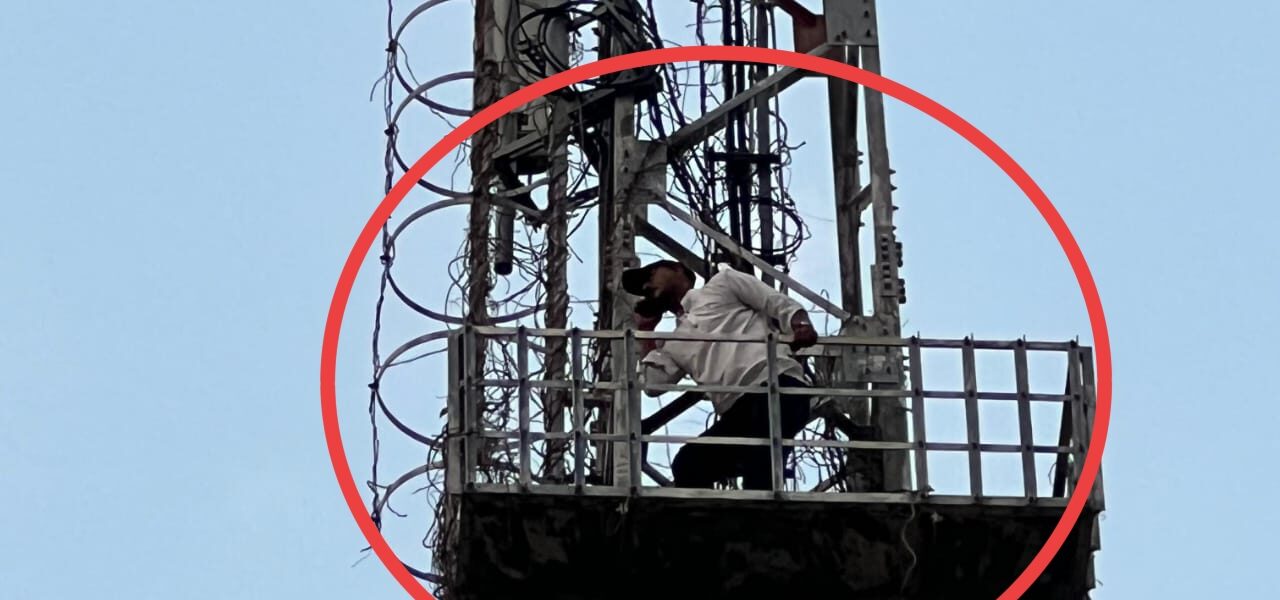 बैसला का टिकट कटने से नाराज समर्थक चढ़ा मोबाइल टावर पर
