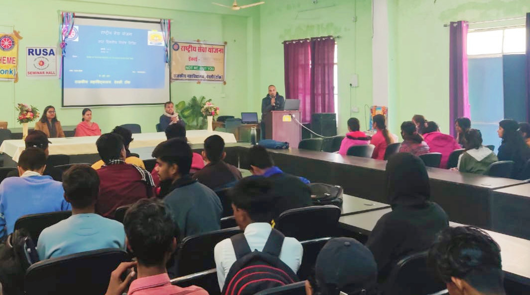 इस दौरान रमेश चंद मीणा, कार्यक्रम अधिकारी (इकाई प्रथम) तथा निकिता वर्मा (इकाई द्वितीय) के निर्देशन में सुबह कालीन प्रार्थना सभा, योगाभ्यास एवं पीटी हुई। स्वयंसेवकों द्वारा महाविद्यालय परिसर में श्रमदान करते हुए सेमीनार हॉल के बाहरी क्षेत्र की सफाई की गई। बौद्धिक सत्र के दौरान में नर्सिंग अधिकारी दिनेश ने प्राथमिक चिकित्सा से संबंधित आपातकालीन स्थिति में बचाव के बारे बताया। बौद्धिक सत्र की मुख्य वक्ता डॉ. प्रियंका जैन, सहायक आचार्य ने “विद्यार्थी जीवन में सोशल मीडिया की भूमिका” विषय पर विस्तृत व्याख्यान प्रस्तुत किया। जैन ने बताया कि किस तरह से आज का युवा बिना विचार किए सोशल मीडिया का उपयोग कर रहा हैं।
