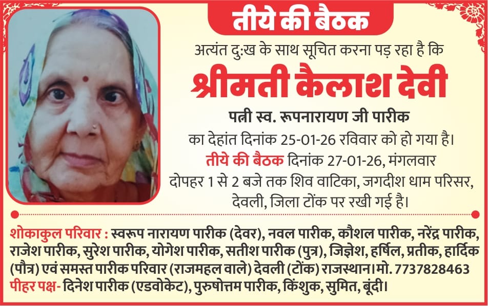 Deoli News 26 जनवरी (दैनिक ब्यूरो नेटवर्क) गणतंत्र दिवस के राष्ट्रीय पर्व पर सोमवार को आस्था और देशभक्ति का एक बेहद खूबसूरत संगम देखने को मिला।शहर की अग्रवाल धर्मशाला में विराजमान श्रीचारभुजानाथ भी इस खास मौके पर पूरी तरह देशभक्ति के रंग में सराबोर नजर आए।