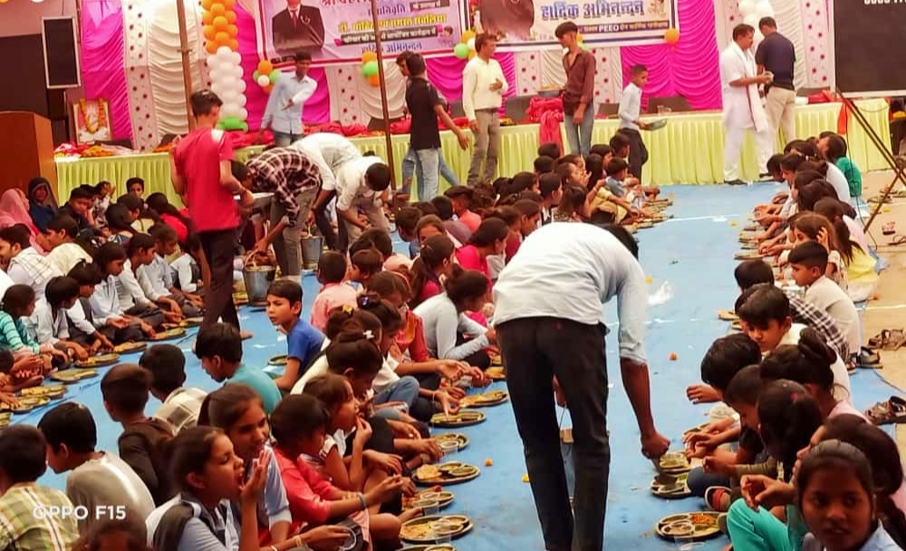 सेवानिवृत्ति पर बच्चों को भोजन कराया