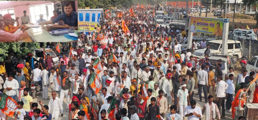 Jahazpur News 4 नवंबर (आज़ाद नेब) भाजपा प्रत्याशी गोपीचंद मीणा ने सवा 12 बजे रिटर्निंग अधिकारी कार्यालय पर पहुंच अपना नामांकन-पत्र दाखिल कर सभा को संबोधित किया ओर निकाली रैली। इस दौरान मीणा के साथ हजारों समर्थक थे।
