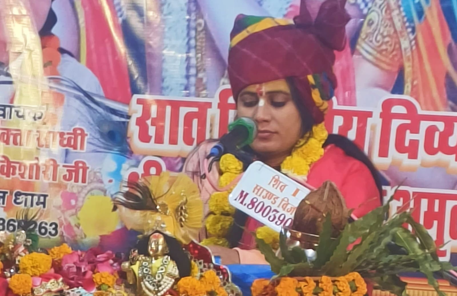 Deoli News 17 दिसंबर (दैनिक ब्यूरो नेटवर्क) अटल उद्यान स्थित टीनसेड प्लेटफार्म पर चल रही सात दिवसीय संगीतमय श्रीमद्भागवत कथा के दूसरे दिन सोमवार रात कथावाचक प्रिया किशोरी ने कहा कि भगवान भाव के भूखे हैं, छप्पन भोग के नहीं।