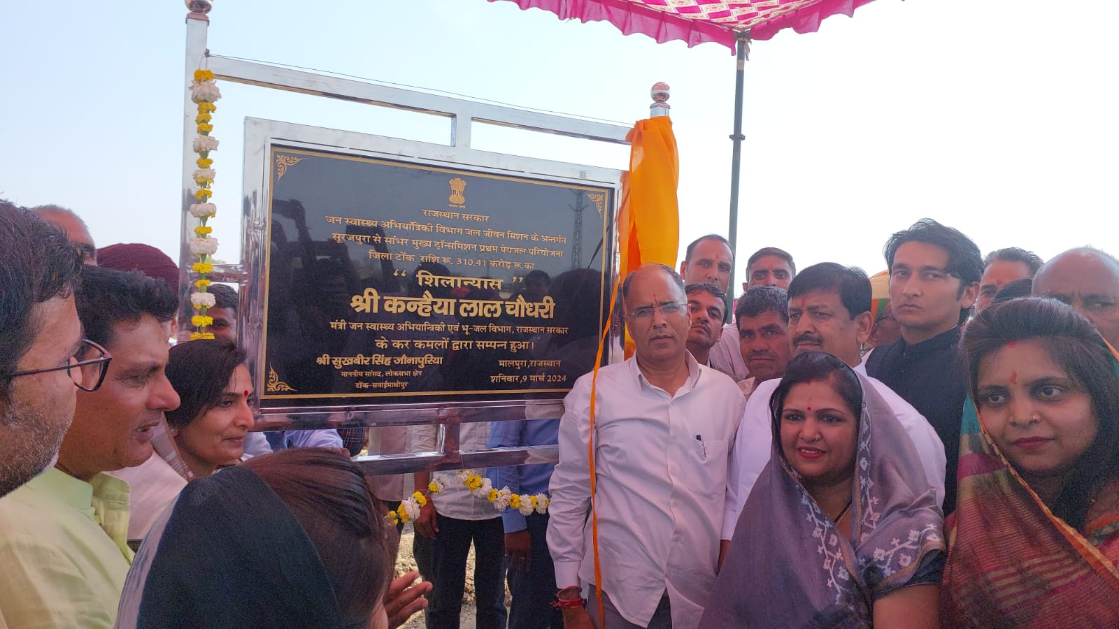 इसी के तहत शनिवार को चौधरी ने टोंक जिले के उपखंड मालपुरा में 310.41 करोड़ की राशि से बनने वाले सूरजपुरा से सांभर मुख्य ट्रांसमिशन प्रथम पेयजल परियोजना का शिलान्यास किया। उपखंड मालपुरा के जनस्वास्थ्य अभियांत्रिकी के पंप हाउस परिसर में आयोजित कार्यक्रम में जलदाय मंत्री ने कहा कि इस परियोजना के बनने से 539 गांवों के 1.68 लाख घरों को पीने का पानी पर्याप्त मात्रा में मिल सकेगा। इस सिस्टम को भविष्य की पेयजल आवश्यकताओं को ध्यान में रखकर विकसित किया जा रहा है। उन्होंने कहा कि जल जीवन मिशन को पूरा करने का समय मार्च 2024 था। लेकिन राजस्थान इस योजना में देश में अंतिम पायदान पर है। योजना को पूरा करने के लिए देश के प्रधानमंत्री नरेंद्र मोदी एवं केंद्रीय जल शक्ति मंत्री गजेन्द्र सिंह शेखावत ने एक वर्ष की सैद्धांतिक सहमति दी है। गत दो माह में इस योजना के कार्यों को गति मिली है।