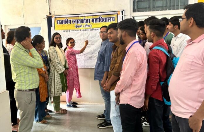 Deoli News 21 मार्च (दैनिक ब्यूरो नेटवर्क) राजकीय महाविद्यालय देवली में आगामी लोकसभा आम चुनाव को लेकर स्वीप योजना अंतर्गत मतदाता जागरूकता के लिए विभिन्न गतिविधियों का आयोजन किया जा रहा है।