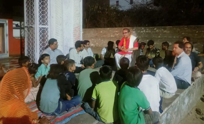 Deoli News 9 मई (दैनिक ब्यूरो नेटवर्क) राष्ट्रीय स्वयंसेवक संघ के जयपुर प्रांत के गत 26 अप्रैल से 10 मई तक चल रहे नारायण दर्शन यात्रा कार्यक्रम के तहत अमावस्या पर कथावाचक तुलसीराम गौतम ने रामदेव मंदिर देवली परिसर में कथा वाचन किया।