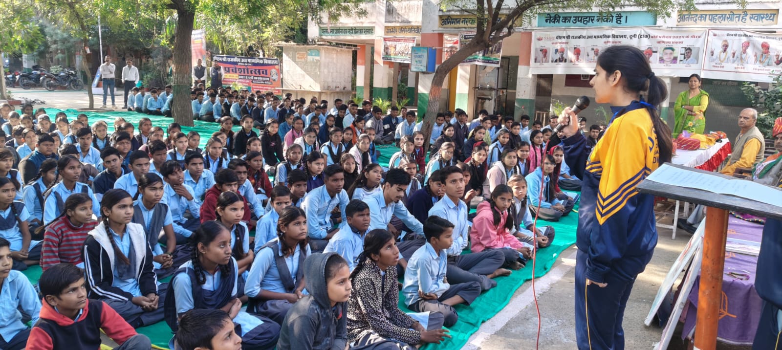 दूनी स्थित पीएम श्री राजकीय उच्च माध्यमिक विद्यालय में शुक्रवार को मेंटर-मेंटी वार्ता हुई। योजना प्रभारी सुरेंद्र सिंह नरूका ने बताया कि पंचायत प्रारंभिक शिक्षा अधिकारी एवं प्रधानाचार्य भंवरलाल कुमार के निर्देशन में आयोजित वार्ता में देव संस्कृति विश्वविद्यालय शांतिकुंज हरिद्वार उत्तराखण्ड में अध्ययनरत छात्रा यासिका जोशी, निवेदिता पठानिया एवं गरिमा ने मेंटर के रूप में वार्ता देकर भारतीय संस्कृति के मुख्य तत्वों से छात्र छात्राओं को रूबरू कराया।