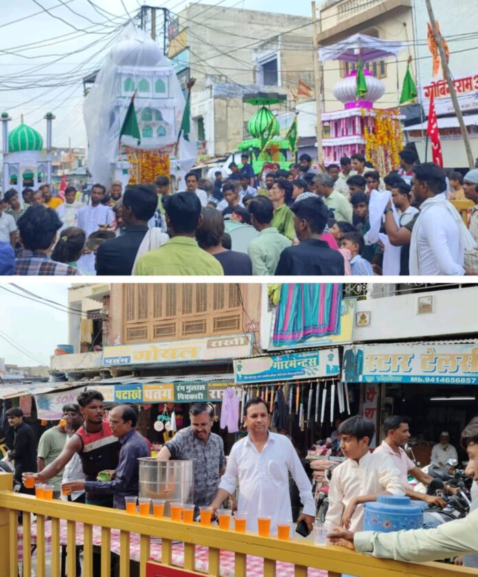 समाज के प्रवक्ता मोहम्मद इदरीश ने बताया कि शहर के एजेंसी एरिया के इमाम बाड़ा से, कुरैशी मोहल्ला, जामा मस्जिद के इलाके भिश्ती मोहल्ले, बंगाली कॉलोनी, प्रताप नगर आदि क्षेत्रों के ताजियों के साथ करीब एक दर्जन छोटे ताजिए निकाले गए। इन सभी ताजियों का छतरी चौराहे पर मिलन हुआ। इस अवसर पर मुस्लिम समाज के उस्ताद व नोजवानों ने हैरतअंगेज करतब दिखाते हुए अखाड़े का प्रदर्शन किया। कार्यक्रम के दौरान मुस्लिम समाज के पदाधिकारियों द्वारा देवली उपखंड अधिकारी दुर्गाप्रसाद मीणा, पुलिस उपअधीक्षक रामसिंह जाट और थानाधिकारी राजकुमार नायक की दस्तारबंदी कर स्वागत किया गया। शाम को ऊंचा ग्राम स्थित कर्बला में गमगीन माहौल में ताजियों को सुपर्दे खाक किया गया। मोहर्रम के मौके पर महाराणा प्रताप चौराहे पर मुस्लिम समाज के युवाओं ने दरगाह के बाहर स्टॉल लगाकर राहगीरों को ठण्डा, मीठा शर्बत पिलाया। नासिरदा में भी मोहर्रम पर ताजिए निकाले गए। मोहर्रम के मौके पर शहर के पेट्रोल पंप स्थित दरगाह पर मुस्लिम समाज के लोगों ने मीठे शरबत की छबीली लगाई तथा राहगीरों को मीठा शरबत पिलाया।