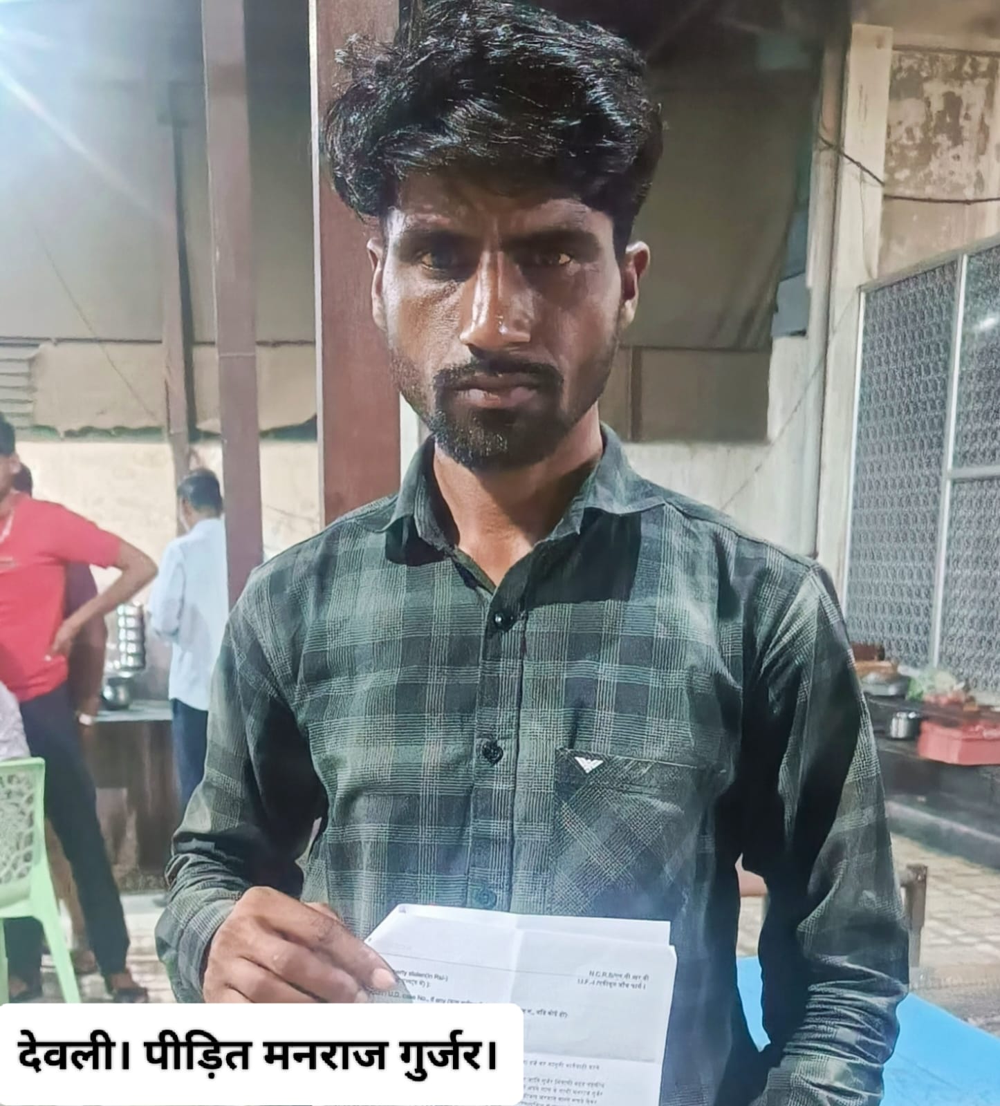 पुलिस ने बताया कि यह रिपोर्ट मनराज गुर्जर पुत्र जंसीलाल गुर्जर निवासी बहड़, तहसील निवाई थाना बरोनी ने दर्ज कराई है। इसमें बताया कि शुक्रवार रात 12 बजे कृष्णा होटल से वह अपने मित्र के साथ डीजल भरवाने के रुपए लेकर पेट्रोल पंप की ओर जा रहे थे। तभी आकाश ढोली व विकास मीणा आए। जिन्होंने उनकी बाइक के आगे अपनी बाइक लगा दी तथा गाली गलौज कर धक्का मुक्की करने लगे। वहीं शराब के लिए रुपए की मांग करने लगे। वही पीड़ित मनराज के साथी सुरेश चौधरी समेत पर लकड़ी से वार किया। इससे उनके पीठ पर चोट आई है। दोनों जनों के चिल्लाने पर आसपास के लोग एकत्रित हुए। जिन्होंने दोनों आरोपियों को गोविंदा होटल के समीप दबोच लिया। वहीं पुलिस को सूचना देकर सुपुर्द कर दिया। मामले में पुलिस ने प्रकरण दर्ज कर जाँच शुरू कर दी है।