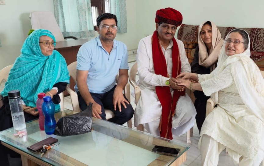 Deoli News 18 अगस्त (दैनिक ब्यूरो नेटवर्क) अलीगढ़ कस्बे की जैबुन्निसा बेगम ने अपनी बरसों की रस्म व परम्परा निभाते हुए रविवार को पूर्व मंत्री डॉ. प्रभुलाल सैनी की हिन्दू संस्कृति के अनुसार तिलक लगाकर, मुँह मिठाकर व पूजन कर रक्षासूत्र बांधा।