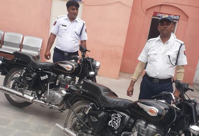 Deoli News 24 जून (दैनिक ब्यूरो नेटवर्क) शहर में पिछले कई दिनों से पटाखे की आवाज छोड़ने वाली मोडिफाइड साइलेंसर वाली दो बुलेट बाइकों पर सोमवार को यातायात पुलिस देवली ने कार्रवाई की है।