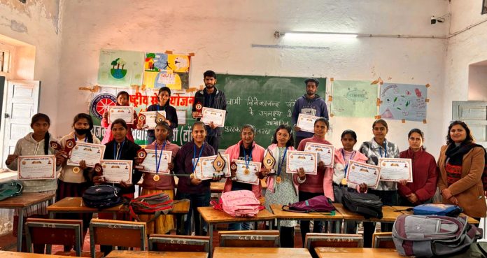 Deoli News 16 जनवरी (दैनिक ब्यूरो नेटवर्क) राजकीय महाविद्यालय देवली में गुरुवार को राष्ट्रीय सेवा योजना की इकाई प्रथम एवं द्वितीय के तत्वाधान में राष्ट्रीय युवा सप्ताह के अंतर्गत आयोजित विभिन्न प्रतियोगिताओं के विजेताओं का पुरस्कार वितरण कार्यक्रम हुआ।