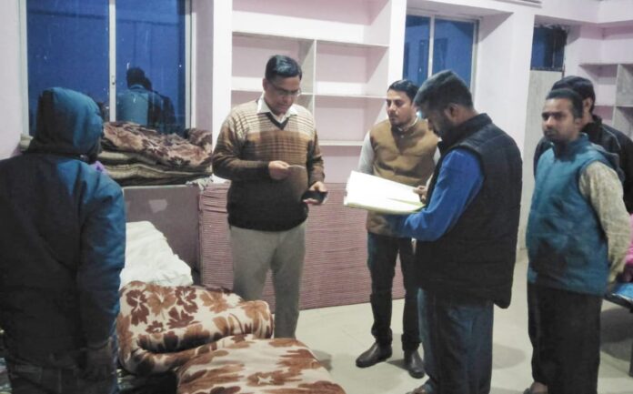 इसके अलावा यहां रात्रि के वक्त ठहरने वाले लोगों के दस्तावेज देखे। साथ ही रैन बसेरे में साफ सफाई रखने तथा इसके बाहर लगी अस्थाई दुकानों को हटाने को कहा गया।