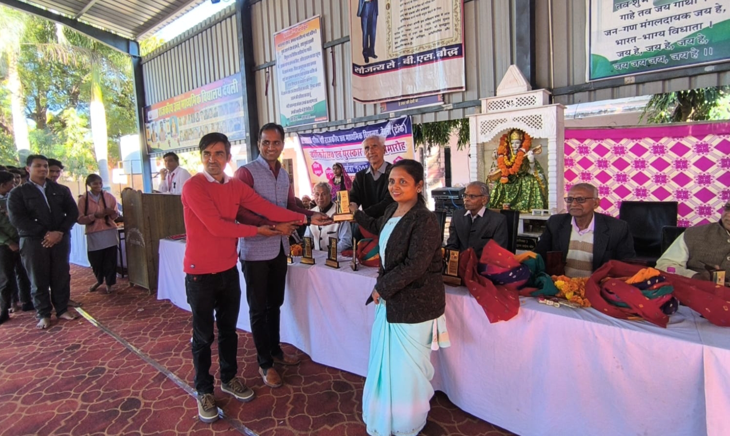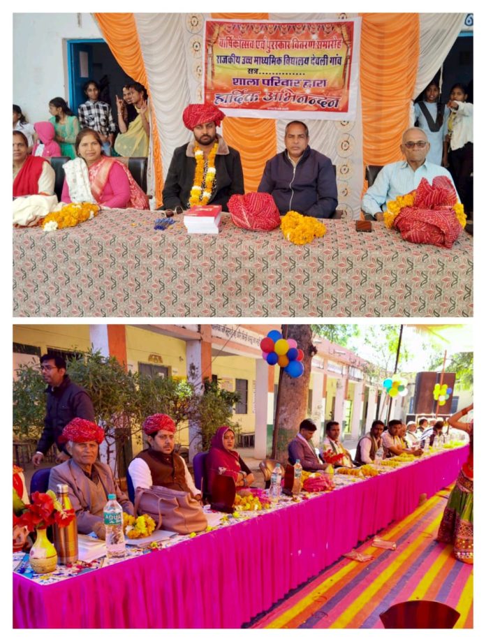 Deoli News 25 जनवरी (दैनिक ब्यूरो नेटवर्क) राजकीय उच्च माध्यमिक विद्यालय देवली गांव में शनिवार को वार्षिक उत्सव एवं पुरस्कार वितरण समारोह हुआ। यहां मुख्य अतिथि समाजसेवी हर्षवर्धन सिंह शक्तावत थे।