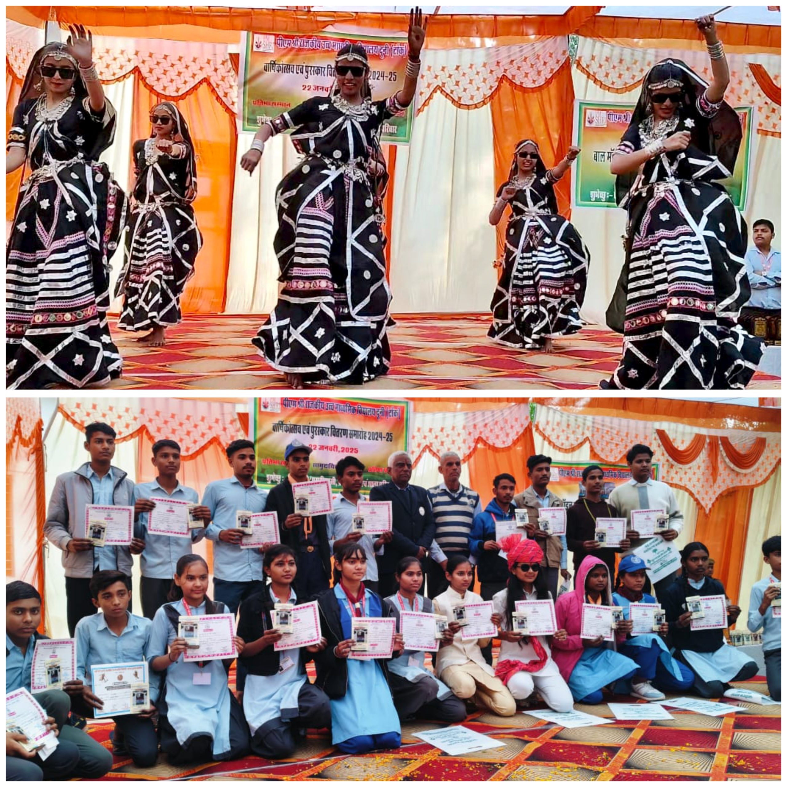 जिन्होंने मां सरस्वती के चित्र के समक्ष दीप प्रज्जवलन कर कार्यक्रम शुरू किया। सांस्कृतिक कार्यक्रम प्रभारी उप प्रधानाचार्य अनुराधा कलवार ने बताया कि छात्र-छात्राओं ने रंगारंग सांस्कृतिक कार्यक्रम प्रस्तुत कर तालियां बटोरी। समारोह में अतिथियों द्वारा प्रतिभावान छात्र छात्राओं एवं शिक्षा दान महादान के भामाशाहों का प्रशस्ति पत्र एवं स्मृति चिन्ह प्रदान कर सम्मान किया गया। विद्यालय में हाल ही में दो लाख रुपए की लागत से टाटा फाउंडेशन जयपुर द्वारा स्थापित बाल मॉडल पुस्तकालय का उद्घाटन अतिथियों द्वारा फीता काटकर किया गया।
