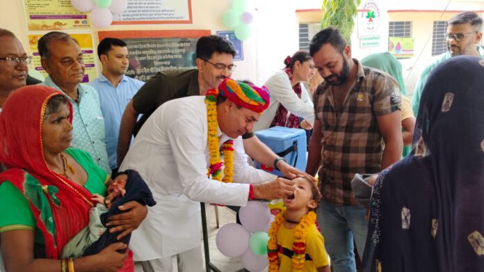 Jahazpur News 30 जून (आज़ाद नेब) राष्ट्रीय पल्स पोलियो अभियान की शुरुआत रविवार को विधायक गोपीचंद मीणा ने सामुदायिक स्वास्थ्य केंद्र जहाजपुर पर बच्चों को पोलियो की खुराक पिलाकर की।