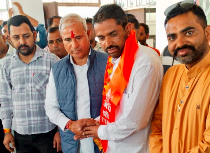 Deoli News 23 फरवरी (दैनिक ब्यूरो नेटवर्क) स्थानीय विधायक राजेंद्र गुर्जर ने अपने समर्थक विनोद माहुर को रविवार को अपने हाथों से चप्पल पहनाई है। वही संकल्प पूरा होने पर समर्थक ने भी 6 साल बाद अपनी हेयर कटिंग और सेविंग कराई है।