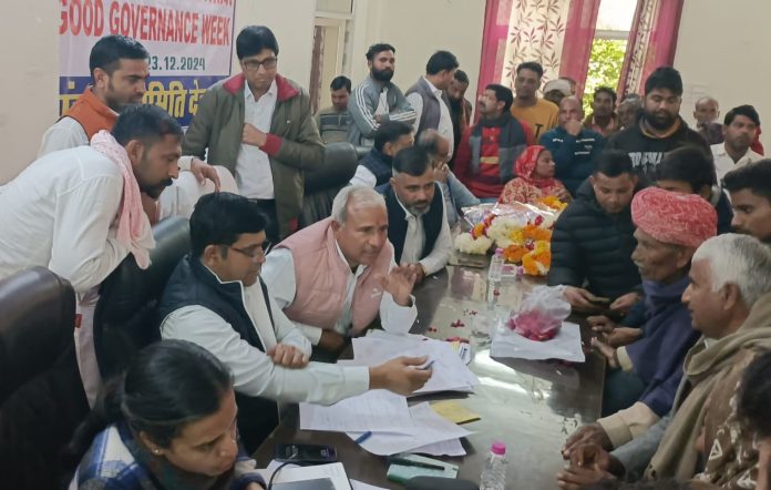 Deoli News 23 दिसंबर (दैनिक ब्यूरो नेटवर्क) सुशासन सप्ताह प्रशासन गांव की ओर शिविर का सोमवार को पंचायत समिति सभागार में आयोजन हुआ। इसमें स्थानीय विधायक राजेंद्र गुर्जर मौजूद रहे। उपखंड अधिकारी मनोज कुमार मीना ने बताया कि शिविर में 147 परिवाद प्राप्त हुए।