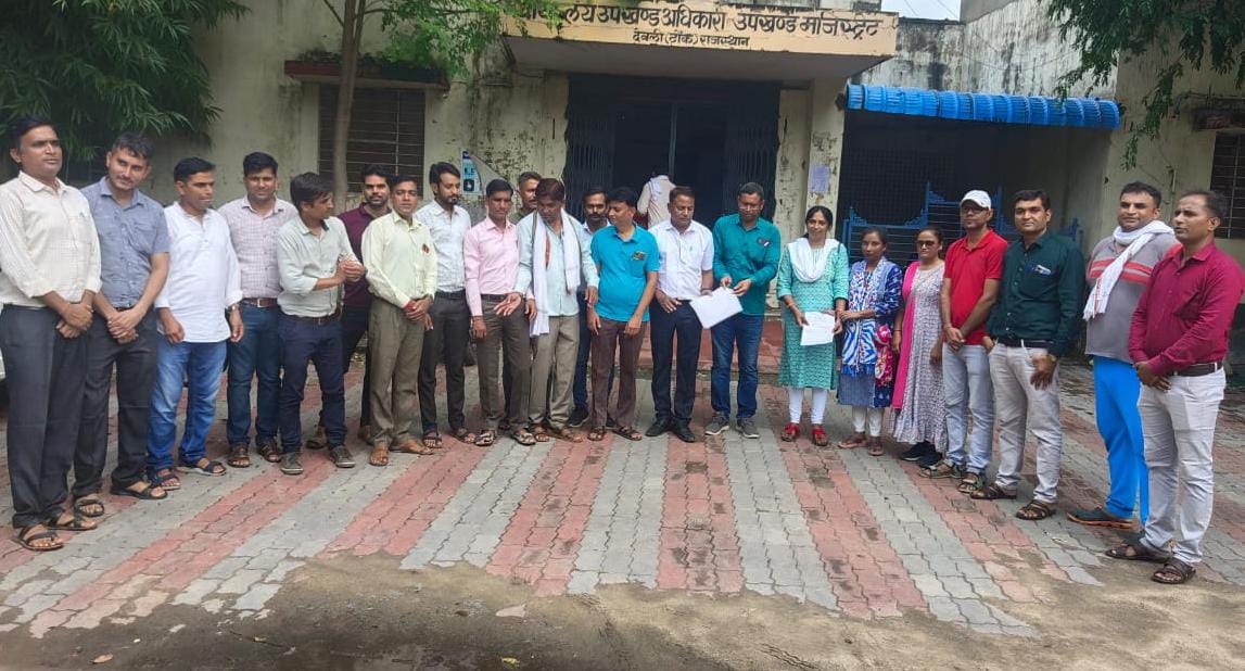 ज्ञापन सौपने में शंकर फागना, राजेंद्र मीना, सुरेश कुमार मीणा, शंकर लाल, जितेंद्र बैरवा, धर्मराज मीना, महेंद्र खटीक, सत्य प्रकाश माहेश्वरी, मनोज मीना, यादराम मीना, विष्णु सिह सोलंकी, राजेश मीणा सहित शामिल थे।