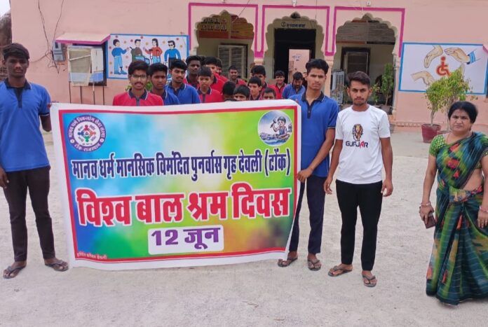 Deoli News 12 जून (दैनिक ब्यूरो नेटवर्क) अध्यक्ष तालुका विधिक सेवा समिति एवं सिविल न्यायाधीश एवं न्यायिक मजिस्ट्रेट अनिशा शर्मा देवली के निर्देशानुसार देवली के मानव धर्म मानसिक विमंदित पुनर्वास गृह एवं आम्रपाली बाल गृह देवली में विश्व बाल श्रम निषेध दिवस पर जागरूकता शिविर लगा।