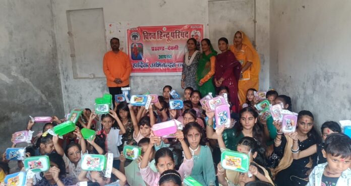 विश्व हिंदू परिषद के प्रखंड मंत्री विशाल राव एवं दुर्गावाहिनी संयोजिका मनीषा जैन ने बताया कि संगठन की कविता सेन, राजकुमारी शर्मा, बीना जैन, रामप्यारी, दिव्या राव, गुनगुन राव, मनीषा अग्रवाल एवं विहिप के विक्रम सिंह के नेतृत्व में पहले दाबी कॉलोनी में 30 कन्याओं को भोजन करवाया। वहीं लांगूर व भैरव रूप में बच्चों को भोजन करवाया गया। पनवाड़ गांव में 70 बालिकाओं को तथा देवली शहर एवं ज्योति कॉलोनी में 150 बालिकाओं को भोजन करवा कर उपहार दिए गए। माता स्वरूप मानते हुए सभी बालिकाओं से आशीर्वाद लिया गया। इससे पूर्व सभी बालिकाओं के मंगल तिलक भी लगाया गया। इस दौरान बालिकाओं के रक्षा सूत्र भी बांधे।