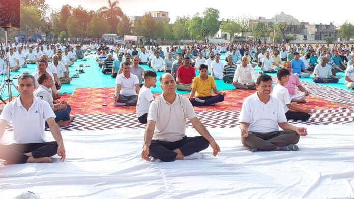 Desk News 21 जून (दैनिक ब्यूरो नेटवर्क) दसवां अंतर्राष्ट्रीय योग दिवस शुक्रवार को जिलेभर में उत्साह के साथ मनाया गया। जिला स्तर पर आयोजित समारोह में जलदाय मंत्री कन्हैयालाल चौधरी ने कहा कि देश के प्रधानमंत्री नरेंद्र मोदी के प्रयासों से आज विश्व में योग को अपनाया गया है।