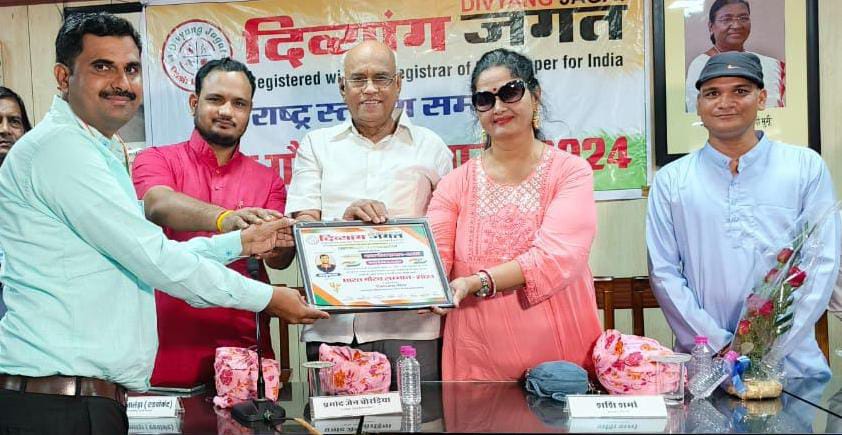Deoli News 6 अक्टूबर (दैनिक ब्यूरो नेटवर्क) समाचार पत्र दिव्यांग जगत द्वारा भैरोसिंह शेखावत सभागार राजस्थान चैंबर ऑफ कॉमर्स जयपुर में कार्यक्रम हुआ। इसमें दिव्यांगों के लिए पत्रकारिता के क्षेत्र में अच्छा काम करने पर देवली निवासी महेश कुमार शर्मा को भारत गौरव सम्मान मिला है।