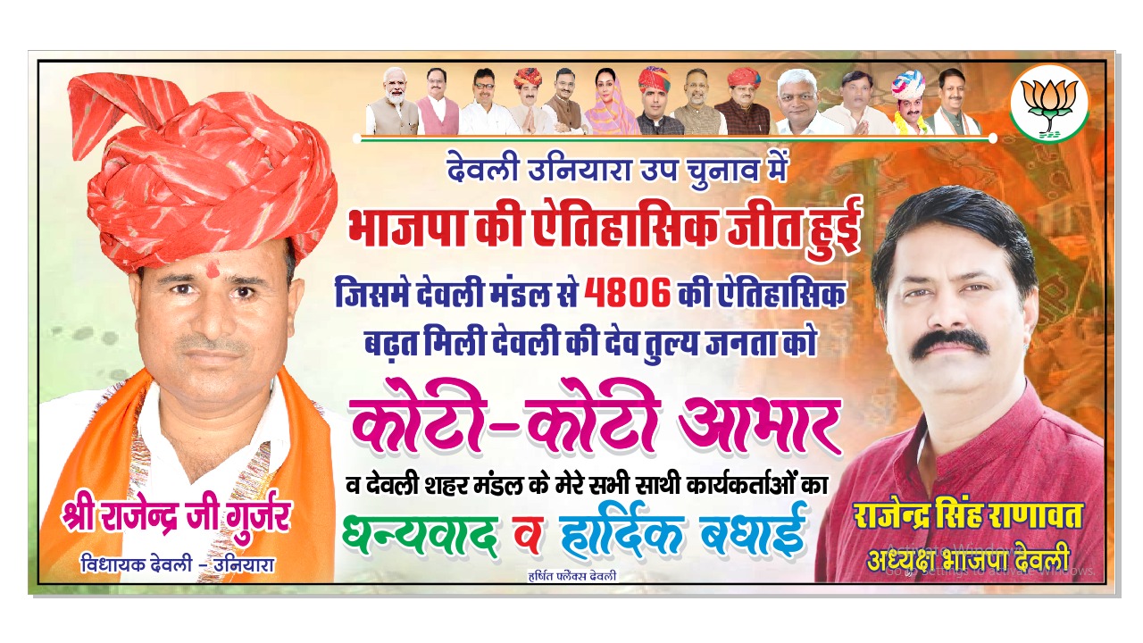 Deoli News 28 नवंबर (दैनिक ब्यूरो नेटवर्क) नवनिर्वाचित विधायक राजेंद्र गुर्जर का बुधवार रात अग्रवाल धर्मशाला परिसर में स्वागत अभिनंदन कार्यक्रम हुआ। इस मौके पर विधायक का माल्यार्पण करने के लिए होड़ मच गई।
