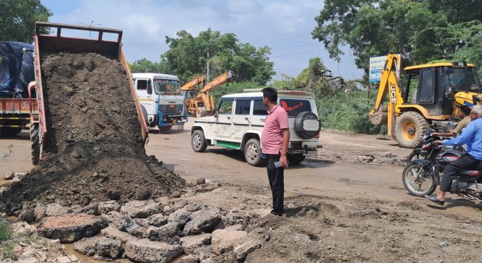 Deoli News 8 सितंबर (दैनिक ब्यूरो नेटवर्क) शहर के अजमेर कोटा बाईपास पर बारिश की वजह से टूटे रोड और 10-10 फीट चौड़े गड्ढों के चलते पूरे दिन जाम लगा रहता था।