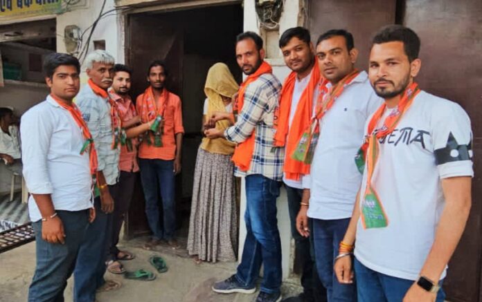 भाजपा युवा मोर्चा जिलाध्यक्ष कुलदीप शर्मा के नेतृत्व में युवा मोर्चा सदस्यों ने ग्राम पंचायत खजुरी में घर घर जन संपर्क कर गृहमंत्री अमित शाह की शक्करगढ़ में होने वाली जन सभा के लिए लोगो को पीले चावल बांटे। उन्होंने बताया कि भाजपा के लोकसभा चुनाव के प्रत्याशी दामोदर अग्रवाल के समर्थन के लिए क्षेत्र के गांवों में जाकर आम जन से भाजपा के पक्ष में मतदान करने की अपील कर रहे है। आम सभा को सफल बनाने तथा अधिक से अधिक लोगों को जोड़ने के लिए भाजपा कार्यकर्ता आमजन से संपर्क साध रहे हैं।