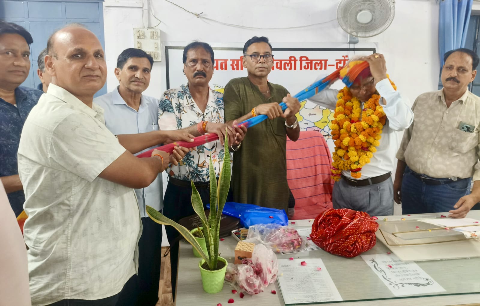 Deoli News 23 जून (दैनिक ब्यूरो नेटवर्क) राजस्थान शिक्षक संघ राष्ट्रीय उपशाखा देवली की ओर से सोमवार को नव पदस्थापित सीबीईओ हरिनारायण वैष्णव का सीबीईओ कार्यालय में माला एवं साफा पहनाकर स्वागत किया गया।