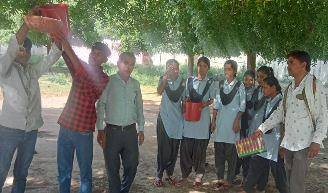 उन्होंने छात्रों को शिविर में करने वाले कार्यक्रम के बारे में अवगत कराया। छात्र छात्राओं द्वारा पक्षियों के लिए परिंडे बांधे गए और पेड़ों को पानी पिलाया गया। यहां सुरेश चन्द्र सिंहल, पंचायत शिक्षक अनिरुद्ध गौतम उपस्थित थे।