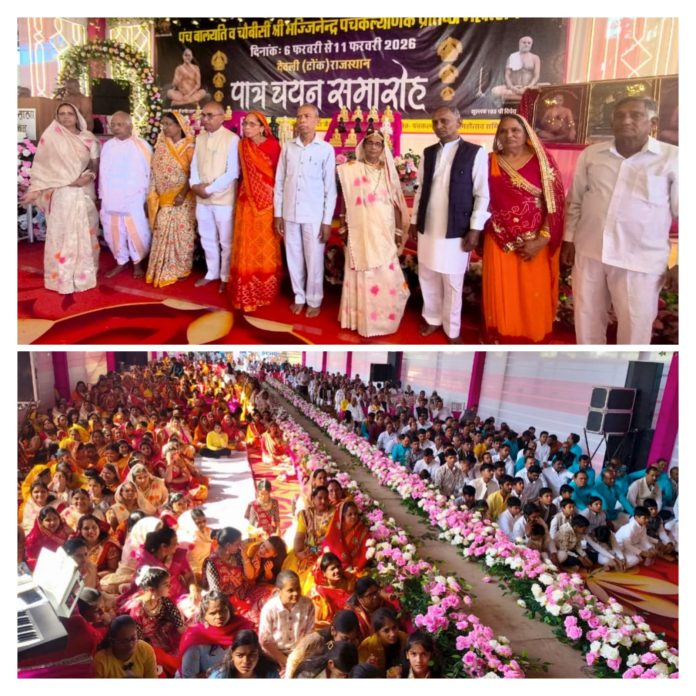 Deoli News 17 दिसंबर (दैनिक ब्यूरो नेटवर्क) देवली में पंचबालयति व चौबीस श्री मज्जिनेन्द्र पंचकल्याणक प्रतिष्ठा महामहोत्सव के पात्र चयन महोत्सव का आयोजन बुधवार को नगर पालिका टीनशेड में मुनि प्रणीत सागर महाराज एवं क्षुल्लक विधेय सागर के सान्निध्य में हुआ।