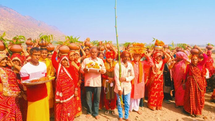 Deoli News 27 जनवरी (दैनिक ब्यूरो नेटवर्क) श्रीराधा रानी गौशाला सिरोही के तत्वाधान में आयोजित हो रही श्रीमद्भागवत कथा के तहत शनिवार को राजमहल में कलश यात्रा निकाली गई।