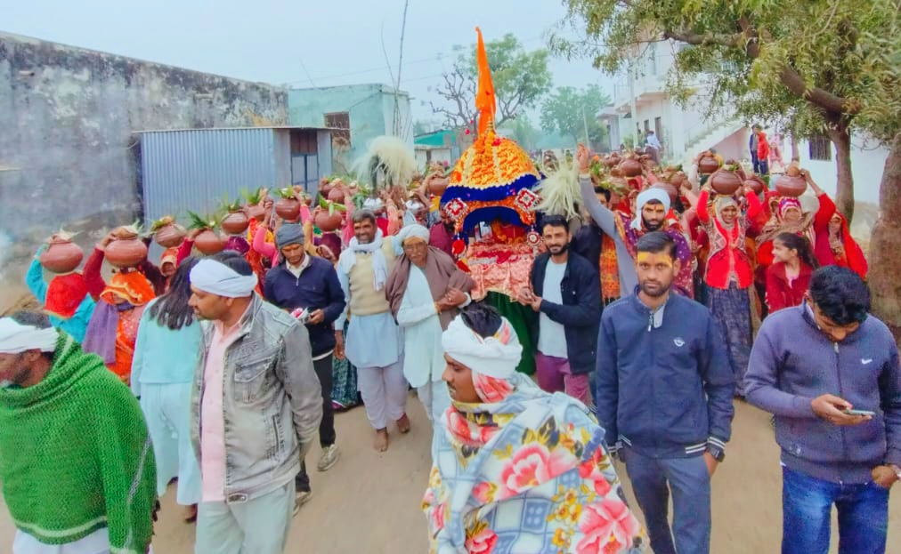 अमरजीत धाकड़ ने बताया कि इस दौरान गाजे बाजे के साथ गांव में कलश यात्रा निकाली गई। महिलाएं सिर पर कलश धारण कर मंगल गीत गाते हुए चल रही थी। वहीं युवक युवतियां भगवा ध्वज फहरा रहे थे। कलश यात्रा में बड़ी संख्या में ग्रामीणों ने भाग लिया। इस दौरान भगवान राम व हनुमान के भजनों पर श्रद्धालु नाचते गाते हुए चल रहे थे। “कीजों केसरी के लाल, मेरा छोटा सा है काम” भजन पर श्रद्धालु झूम उठे। प्रमुख मार्गो से होकर यह कलश यात्रा ठाकुर जी के मंदिर पहुंची। जहां कलश विराजमान किया गया।