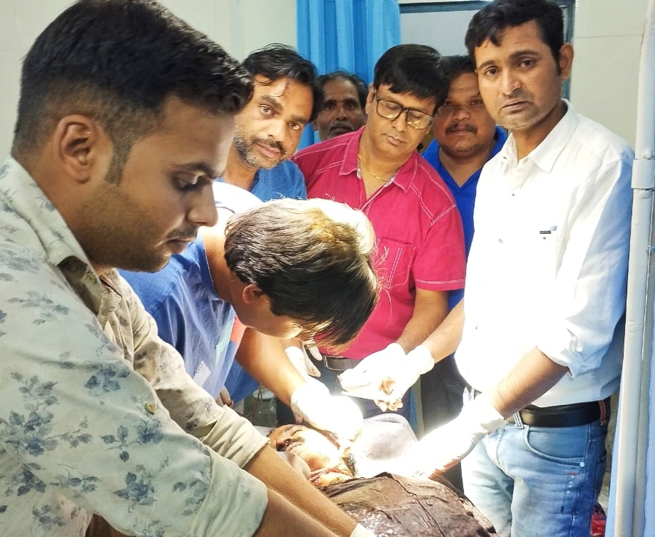 चिकित्सक गोपाल मीणा, प्रतीक चौधरी, नवल किशोर व नर्सिंग ऑफिसर लक्ष्मी निधि शर्मा ने बताया कि हमले के घायल लालसिंह को सुबह करीब 11 बजे देवली चिकित्सालय में लाया गया। उन्होंने बताया कि इस दौरान डॉ. गोपाल लाल अपने चिकित्सा कक्ष में थे। जबकि डॉ. नवल किशोर, नर्सिंग ऑफिसर लक्ष्मी निधि तथा स्त्री रोग विशेषज्ञ एक महिला की डिलीवरी कर फ्री हुए थे। डॉ. गोपाल घायल लाल सिंह को तत्काल ऑपरेशन थिएटर में लेकर आए। जहां डॉ. गोपाल नवल किशोर व लक्ष्मीनिधि ने इलाज शुरू किया। वही सूचना पर ईएनटी चिकित्सक प्रतीक चौधरी भी तत्काल ऑपरेशन थिएटर पहुंचे। जहां प्राथमिक पड़ताल पर देखने में श्वास नली काफी कटी हुई मिली। श्वास नली के कट का आकार करीब 10×5 सेंटीमीटर था। वही स्वर यंत्र को भी नुकसान हुआ तथा ब्लड भी काफी बह चुका था।