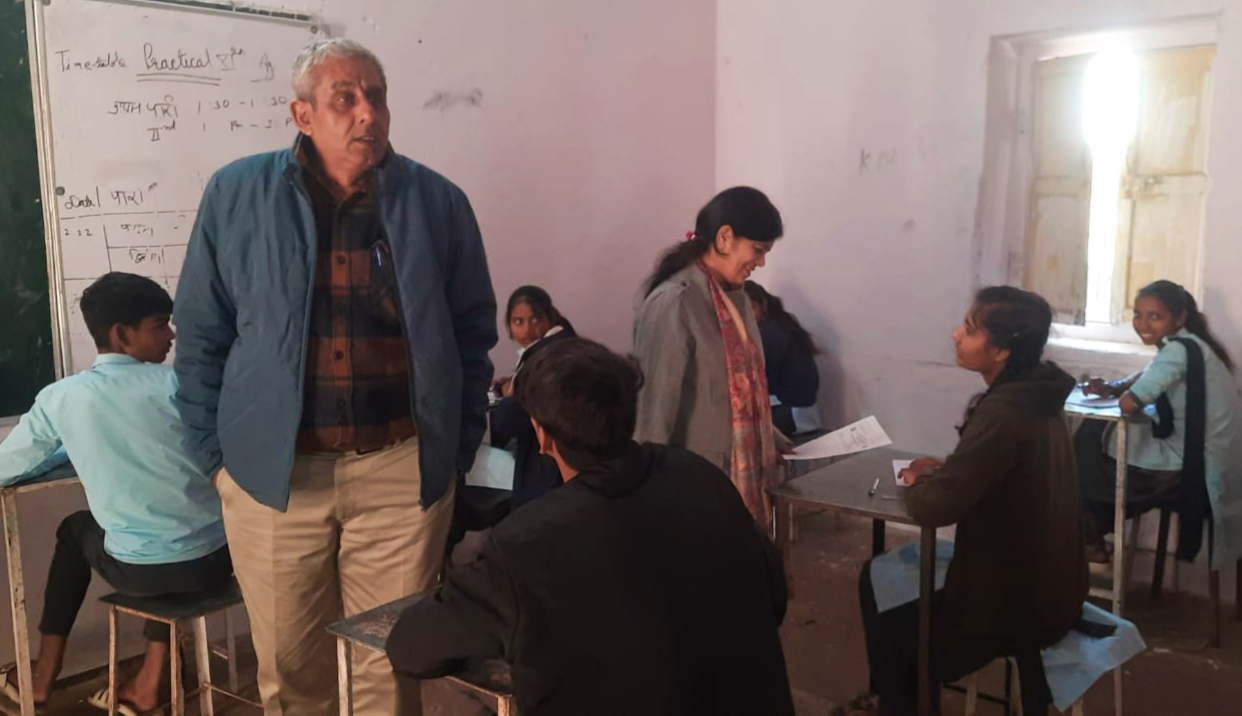 विद्यालय के सहायक प्रशासनिक अधिकारी संजय भारद्वाज ने बताया कि अर्धवार्षिक परीक्षा की द्वितीय पारी में कक्षा 10 की स्वास्थ्य एवं शारीरिक शिक्षा की परीक्षा के दौरान संयुक्त निदेशक को उपप्रधानाचार्य लादूलाल मीणा ने विद्यालय का निरीक्षण करवाया। उन्होंने परीक्षा बैठक व्यवस्था, रोल नंबर आवंटन, प्रश्न पत्र सुरक्षा, वीक्षण रजिस्टर, सहित अन्य आवश्यक दस्तावेज एवं पत्रावलियां देखी। उन्होंने विद्यालय स्टाफ की संबलन बैठक भी ली और कहा कि राजकीय विद्यालय में अधिकतर वही छात्र छात्राएं अध्ययन करते हैं। जिनके अभिभावको की आर्थिक स्थिति कमजोर है। लिहाजा हमारी जिम्मेदारी और भी अधिक बढ़ जाती है।