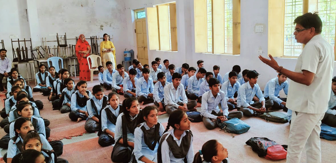 Deoli News 2 अप्रैल (दैनिक ब्यूरो नेटवर्क) पीएमश्री राजकीय उच्च माध्यमिक विद्यालय दूनी में मंगलवार को मुख्य जिला शिक्षा अधिकारी पन्नालाल बैरवा ने छात्र-छात्राओं से संवाद किया।