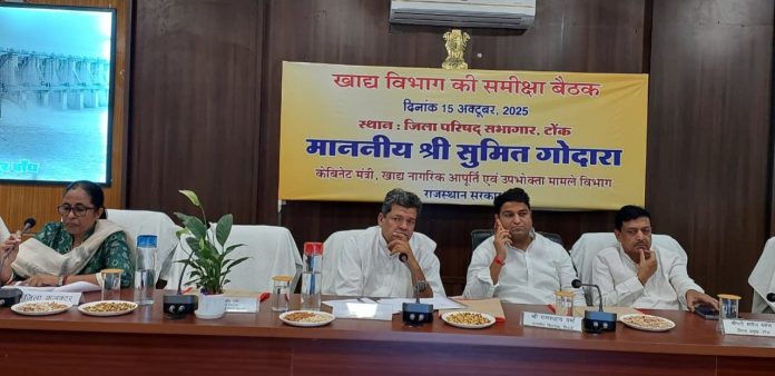 Desk News 15 अक्टूबर (दैनिक ब्यूरो नेटवर्क) खाद्य, नागरिक आपूर्ति एवं उपभोक्ता विभाग के मंत्री सुमित गोदारा ने बुधवार को टोंक जिला परिषद सभागार में समीक्षा बैठक लेकर विभागीय अधिकारियों की बैठक ली।