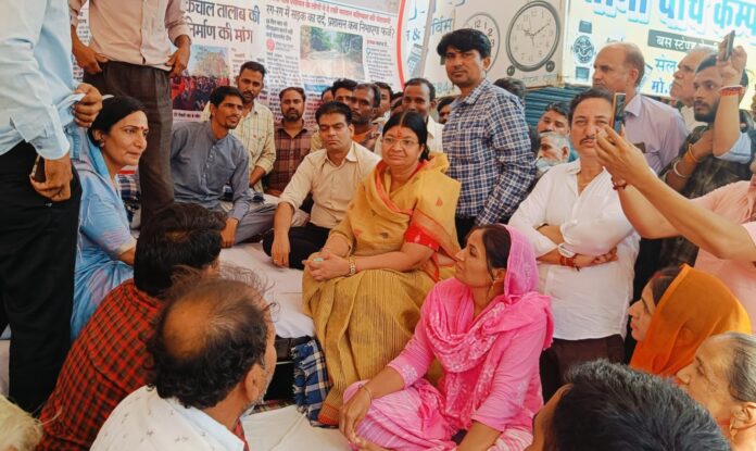 जिला प्रमुख एवं पीएचईडी मंत्री की पत्नी पहुंची धरने पर