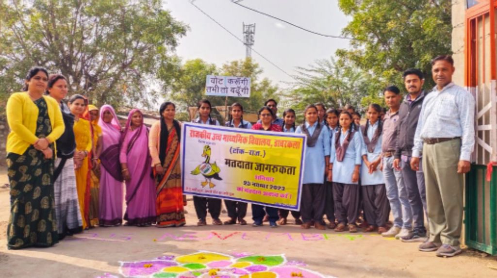 “वोट करूंगी, तभी तो बढूंगी” जैसे नारे से महिलाओं को जागरूक किया गया। इस दौरान पर प्रधानाचार्य शबनम, प्रभारी आशा मीणा, सहप्रभारी भंवरलाल मीणा, सुधीर चौधरी, नंद सिंह राजावत, संतोष कुमार मीणा, छगनलाल मीणा, बूथ लेवल ऑफिसर खेमराज पीटीआई, कालूराम खटीक, रामकुमार खाती, दीपक कुमार मीणा, रामरतन कुमावत समेत कार्यकर्ता, आशा सहयोगिनी, बूथ मित्र और वॉलिंटियर्स मौजूद थे।