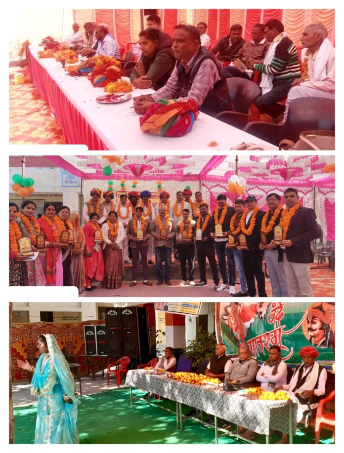 कार्यक्रम में विशिष्ट अतिथि भंवरलाल कुमावत सरपंच, रामराज धाकड, रामस्वरूप चौधरी, सावर लाल गुर्जर, रामदेव बैरवा, भंवर लाल मेघवंशी थे। कार्यक्रम का शुभारंभ सरस्वती मां के चित्र पर दीप प्रज्वलित कर किया गया। विद्यार्थियों ने सांस्कृतिक देशभक्ति व नाटक मंचन के माध्यम से रंगारंग कार्यक्रम की प्रस्तुति दी। प्रधानाचार्य ने बताया कि सत्र 2023-2024 में विद्यालय की आठवीं, पांचवी, दसवी एवं बारहवी बोर्ड परीक्षा में सर्वाधिक अंक लाने वाले छात्र छात्राओं सहित खेलकूद प्रतियोगिताओं में जिला व राज्य स्तर पर विजेताओं को प्रशस्ति पत्र देकर सम्मानित किया गया। कार्यक्रम का संचालन नीरज जैन ने किया। यह जानकारी विद्यालय मीडिया प्रभारी सुगन चन्द कुमावत ने दी।