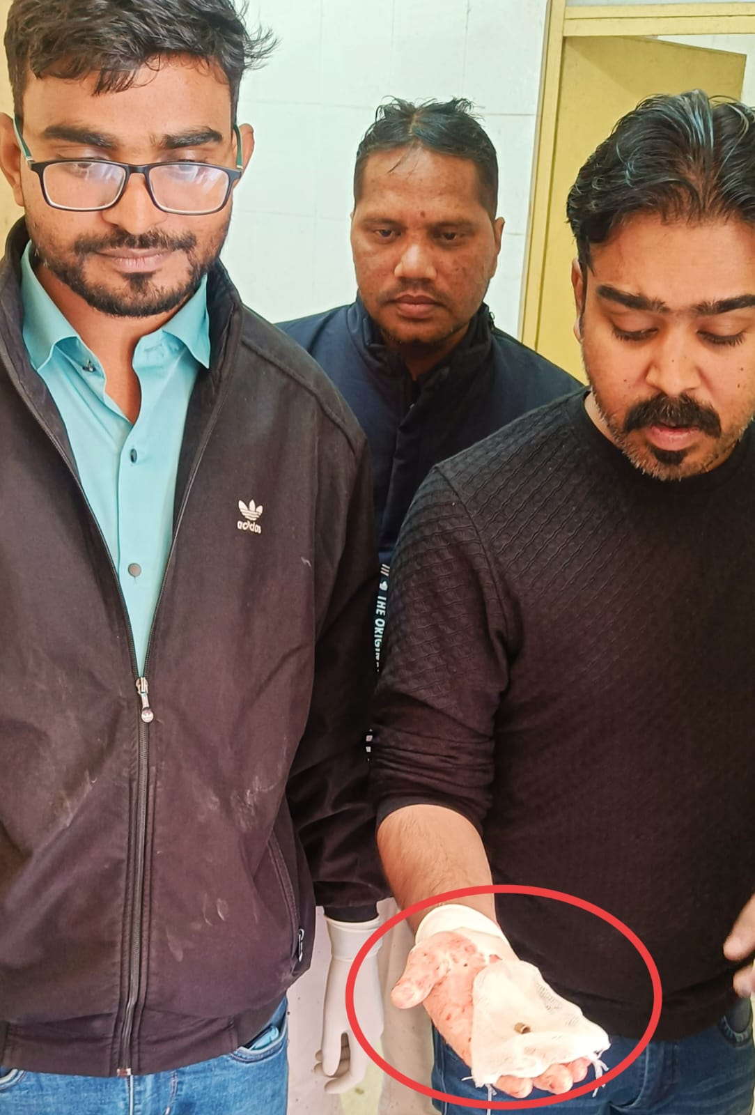 ऑर्थोपेडिक्स डॉ. चैतन्य प्रकाश मीणा ने बताया कि बॉडी में कारतूस ढूंढने के लिए आधा दर्जन से अधिक बार एक्सरे करने पड़े। कारतूस ने सिर के बाएं तरफ़ मास्टॉयड क्षेत्र कान के पीछे 3 सेमी. से प्रवेश किया। यहां घाव का कोई निकास नहीं है। वहीं खोपड़ी के आधार के नीचे पहली ग्रीवा कशेरुका के सामने दाएं स्टर्नोक्लेडोमैस्टॉयड क्षेत्र से गोली निकाली गई। उल्लेखनीय है कि एक पिस्टल देवली पुलिस को बरामद हुआ है।