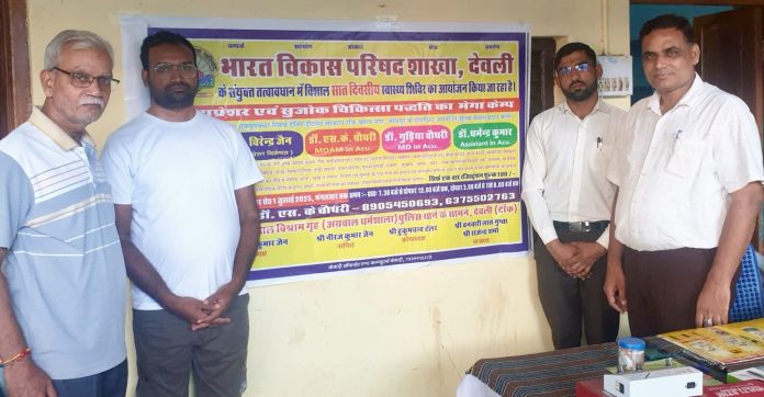 स्वास्थ्य कैंप का उद्घाटन भाजपा शहर मंडल अध्यक्ष अंकित जैन डाबर ने किया। भारत विकास परिषद के अध्यक्ष दौलत जैन एवं कोषाध्यक्ष हुकुमचंद टेलर ने बताया कि कैंप 25 जून से शुरू होकर आगामी एक जुलाई तक चलेगा। इसमें विभिन्न बीमारियों का इलाज एक्यूप्रेशर और सुजोक पद्धति से किया जाएगा। जिसमें डॉ. वीरेंद्र जैन, डॉ. एसके चौधरी, डॉ. गुड़िया चौधरी और डॉ. धर्मेंद्र कुमार अपनी सेवाएं देंगे। यह शिविर प्रतिदिन सुबह 7:30 से दोपहर 12 बजे तक एवं अपरान्ह 3 से रात 8 बजे तक संचालित होगा।