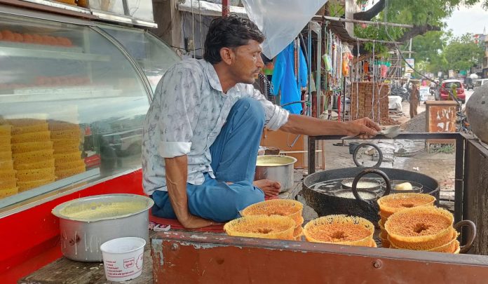Deoli News 11 जुलाई (दैनिक ब्यूरो नेटवर्क) सावन मास की शुरुआत के साथ ही तीज और राखी को लेकर घेवर बनना शुरू हो गए हैं। शहर के रोडवेज बस स्टैंड के बाहर मिठाइयों की दुकान व अन्य जगहों की मिठाई की दुकानों पर घेवर बनाने का काम और बिक्री शुरू हो गई है।