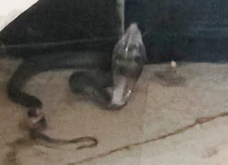 जानकारी के अनुसार यह कोबरा सांप स्टील फर्नीचर व फेब्रिकेशन के व्यापारी रतन विश्नोई के मकान में घुसा। विश्नोई ने बताया कि बुधवार सुबह करीब 8 बजे उनके घर दूधवाला आया। जिसने घंटी बजाई तो रतन विश्नोई बर्तन लेकर दूध लेने के लिए नीचे जाने लगे। इस दौरान उन्हें सीढ़ी पर चढ़ता हुआ कोबरा सांप दिखाई दिया। कोबरा देखकर वे घबरा गए तथा उन्होंने ऊपर से लाठी फटकारी। जिस कोबरा नीचे उतर गया तथा सीढी के नीचे एक कोने में जाकर फन लगाकर बैठ गया। इस दौरान कॉलोनीवासियों व परिजनों ने सांप का नजर रखी तथा स्नेक एक्सपर्ट शादाब अख्तर रिजवी को सूचना दी।