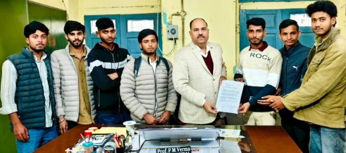 ज्ञापन सौंपने के दौरान रेहान भाटी, कौशल ठागरिया, दिनेश सिंह, गिरीश मीणा, सुनील पांचाल, अंशु मीणा, मोहित गुर्जर सहित छात्र-छात्राएं मौजूद थे।